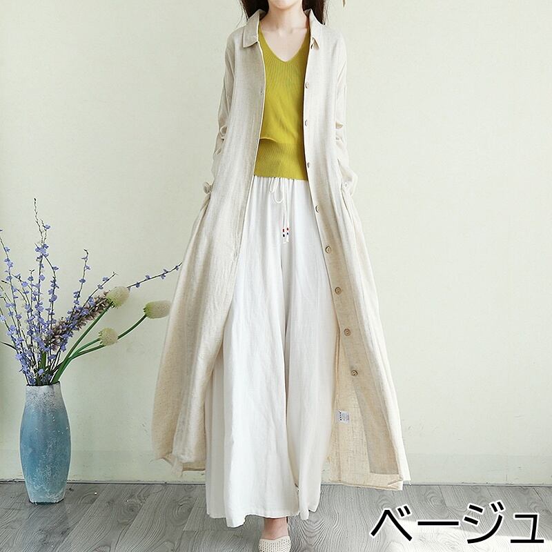 トップス アウター レディース 袖あり 長袖 襟付き フレア ロング丈 マキシ丈 麻 シンプル カジュアル 大人 おしゃれ お洒落 かっこいい アジアン こなれ感 ラフ メンズライク ボーイッシュ ラブリー キュート ガーリー ルーズ 抜け感 フリーサイズ ゆったり 黄色 イエロー 赤 レッド 白 ホワイト オフホワイト 黒 ブラック 無地 春 夏 10代 20代 30代 40代 50代 60代 女性用 ママ マタニティ 公園デビュー 休日 着回し 普段使い 楽ちん 体系カバー 送料無料