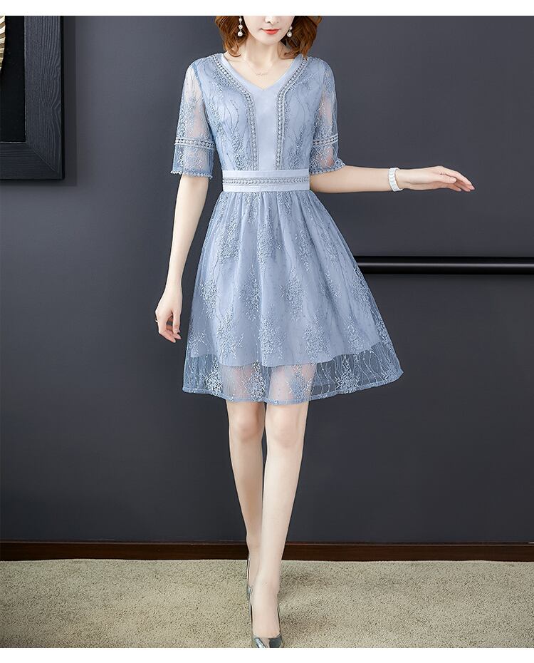 ワンピース レディース 送料無料 Vネック Aライン ハイウエストチュールシフォン 5分袖 刺繍 花柄 透け感 ミディアム丈 ひざ丈 体系カバー クロシェ フレア フレアワンピース エレガント シンプル 大人可愛い かわいい きれいめ お洒落 おしゃれ 大人女子 ワンピドレス イベント デート パーティ— 女子会 襟なし 白 ホワイト ピンク 水色 ブルー 黒 ブラック M L XL 2XL 3XL 休日 お出かけ 韓国 オルチャン ファッション コーデ