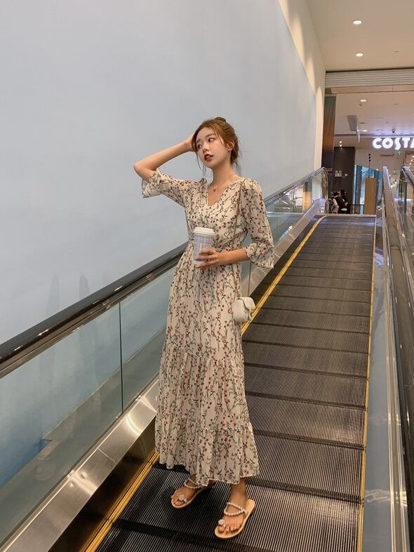 ワンピース レディース 送料無料 マキシワンピース Vネック 小花柄 長袖 パフスリーブ フラワ—プリント ロング丈 ティアードワンピ フレア ウエストマーク エレガント リゾート リラックス こなれ感 おしゃれ チェック柄 スタイル 小顔見せ 着痩せ 体形カバー キャミソール インスタ トレンド 袖なし 大人かわいい 女子会 旅行 プール 海水浴 カジュアルドレス かわいい キュート ママコーデ モテコーデ サマードレス エンパイアライン モノトーンコーデ オープンバック バックリボン
