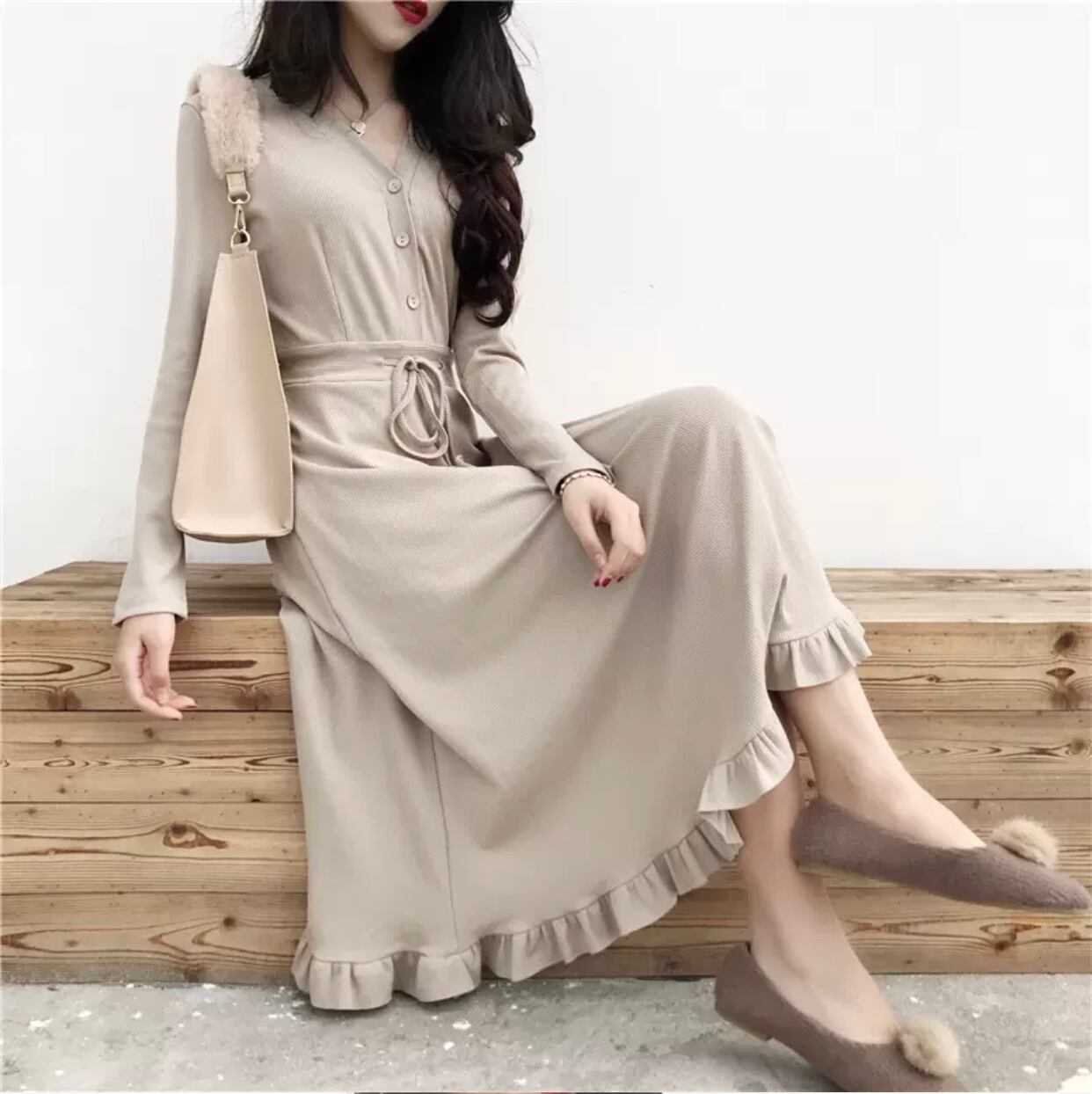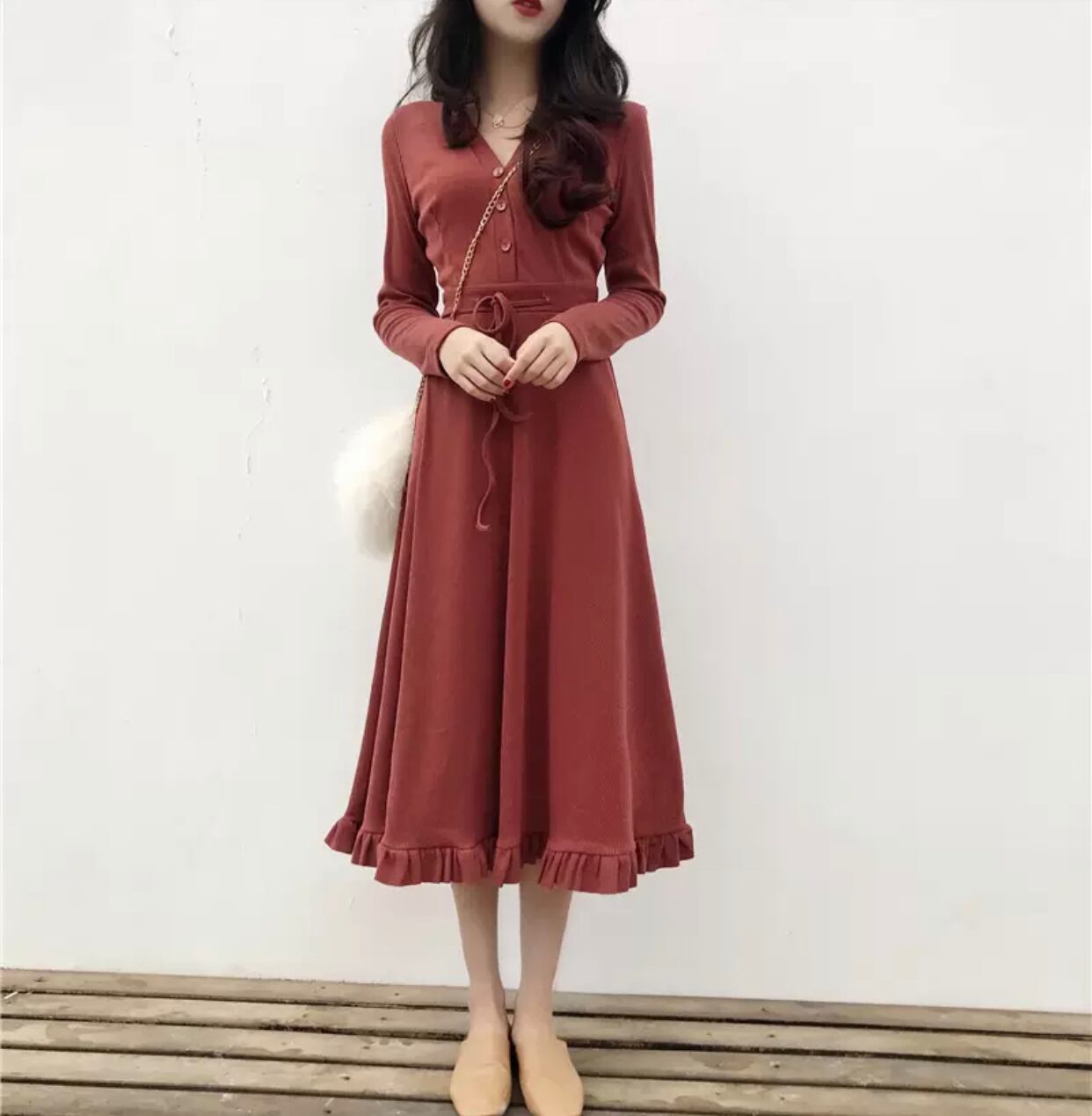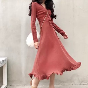 3色フレアワンピース Vネック フリル 送料無料 リボンベルト ロングワンピース レディース トップス 大人可愛い かわいい きれいめ 大人女子 エレガント 無地 春 秋 ガーリー 10代 20代 大人 学生 韓国系 お出かけ 外出 きれいめカジュアル 着回し ファッション デート コーディネート 重ね着 休日 特別な日 お祝い 記念日 メンズウケ カジュアル 普段着 春コーデ 秋コーデ 韓国 おしゃれ シンプル スタイル ゆったり 細見せ 韓国ファッション 長袖 オフィスカジュアル 30代 ママコーデ