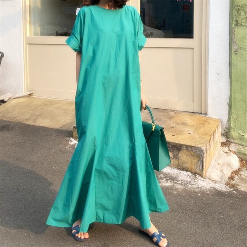 ワンピース レディース 送料無料 3色 マキシワンピース ゆったり ワ ンピース ロング マーメイド 半袖 カジュアル シンプル アクティブ リラックス こなれ感 おしゃれ ナチュラル スタイル 小顔見せ 着痩せ 体形カバー プルオーバー インスタ トレンド ノーブルグリーン パステルパープル オレンジ かわいい かっこいい S M L XL カラバリ 女子会 ラフ 無地 ママコーデ お出かけ 旅行 デート ベーシック ルームウェア 部屋着 クルーネック ラウンドネック マーメイド ゆるリラ