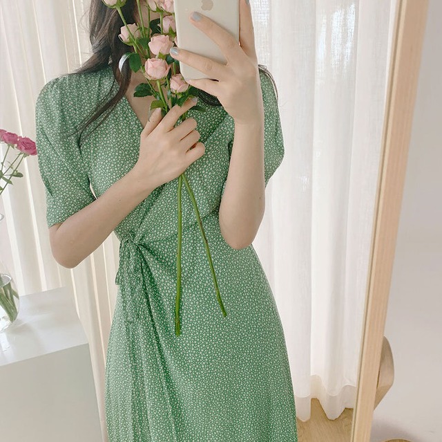 ワンピース レディース 送料無料 2色 フレアワンピース カシュクールワンピース パフリーブ ロング丈 ミモレ丈 フェミニン シンプル リゾート リラックス こなれ感 おしゃれ ドットプリント柄 スタイル 小顔見せ 着痩せ 体形カバー Vネック インスタ トレンド グリーン ブラック 袖付き かわいい 女子会 カジュアルドレス かわいい キュート ガーリー ママコーデ モテコーデ デート ベーシック ロマンチック バルーンスリーブ 大人かわいい くすみカラー とろみ感