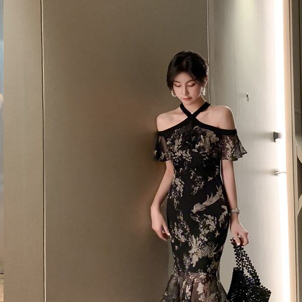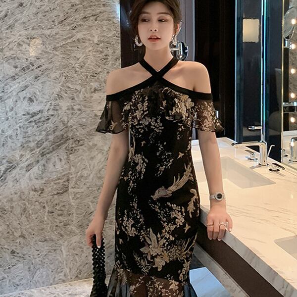 ティーブレイクスカート フレンチレトロシフォンワンショルダーフィッシュテールブラックフローラルドレス レディース 送料無料 体系カバー エレガント シンプル 大人可愛い かわいい きれいめ お洒落 おしゃれ 大人女子 ワンピドレス イベント デート パーティ— 女子会 休日 お出かけ 韓国 オルチャン ファッション コーデ かわいい 大人可愛い きれいめ シンプル 大人 上品 おしゃれ お呼ばれ 二次会 かわいい モテコーデ ベーシック 大人かわいい フィッシュテール フレア