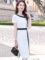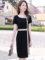 ライン状のパイピングがシャープな印象のタイトワンピース。