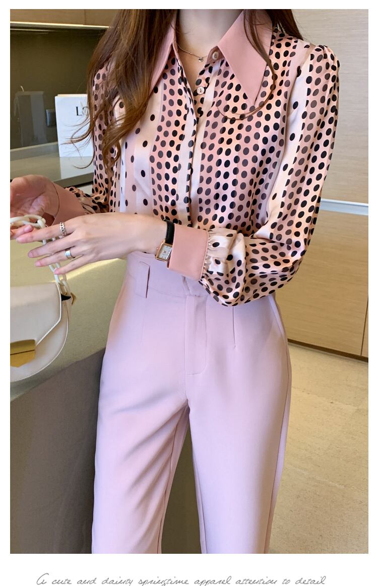 レトロな配色とマルチパターンのドットが可愛いシャツです。