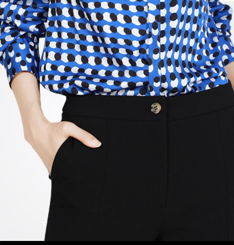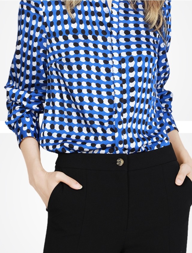 レトロな配色とバイカラーパターンのドットが可愛いシャツです。