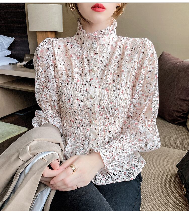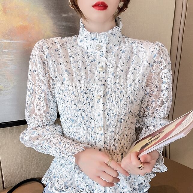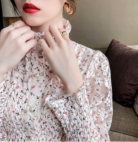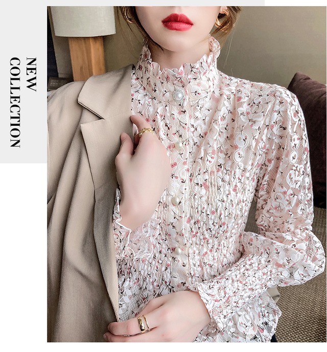 トップス レディース 送料無料 2色 ブラウス シャツ レース シャーリング プリーツ パールボタン シースルー 透け感 ハイネック スタンドカラー 大きいサイズ サイズ豊富 S M L XL 薄手 プリント 黒 ブラック かわいい 大人女子 きれいめ 大人 上品 お洒落 おしゃれ クール こなれ感 ルーズ ゆったり ゆる 着回し 普段使い コーデ ファッション 体型カバー 楽ちん デート お出かけ 休日 10代 20代 30代 学生 春 夏 韓国 オルチャン
