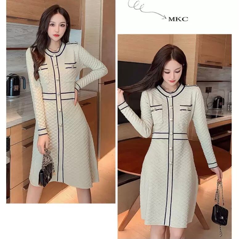 2色 ロングワンピース ミディ丈 バイカラー 送料無料 フレアスカート アイボリー ネイビー レディース ボタン トリム クルーネック 大人可愛い かわいい きれいめ 大人女子 エレガント 無地 春 秋 ガーリー 10代 20代 大人 学生 お出かけ 外出 きれいめカジュアル 着回し ファッション デート コーディネート 重ね着 休日 特別な日 お祝い 記念日 カジュアル 普段着 春コーデ 秋コーデ 韓国 おしゃれ シンプル スタイル ゆったり 細見せ 韓国ファッション 長袖 30代 ママコーデ