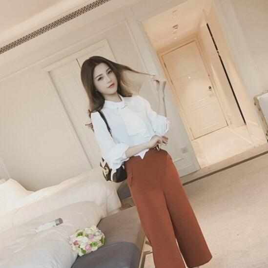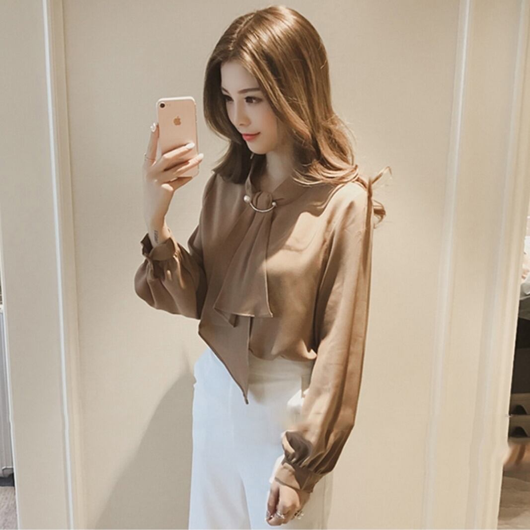女性らしい、エレガントなボウタイブラウス。