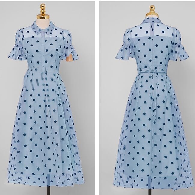 シフォンチュール生地にドットがレトロな雰囲気漂うワンピースです。