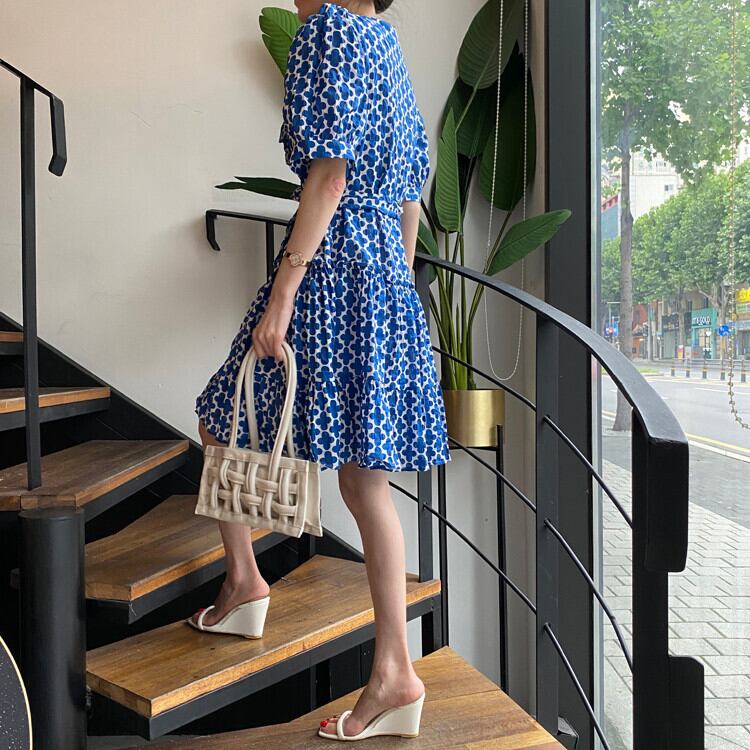 北欧調のフラワーモチーフのティアードワンピースです。