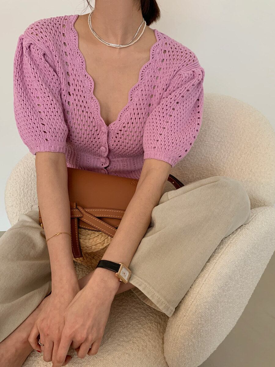 透かし編みのレースニットが涼し気なカーディガン。