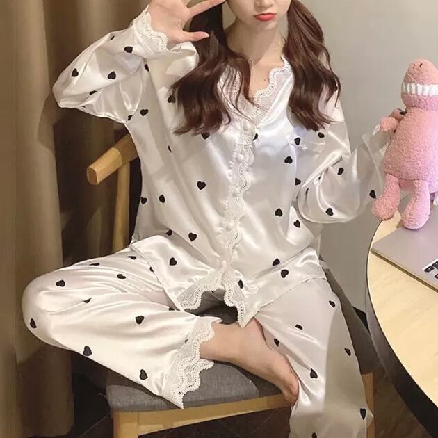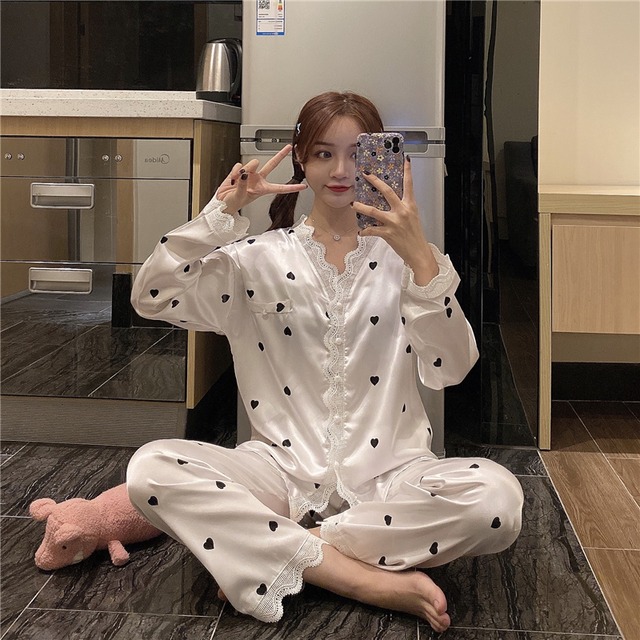 ハート ドット ルームウェア パジャマ セットアップ 2点セット 送料無料 レディース フリル レース