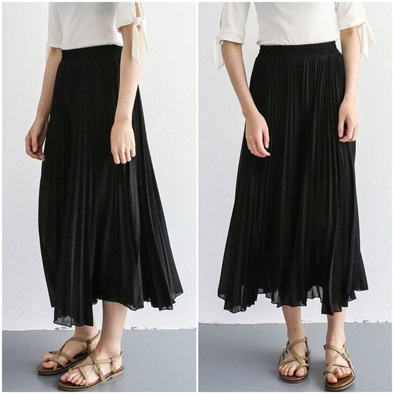 ウエストゴム仕様で裾のシアー感が軽やかに着用できる1枚