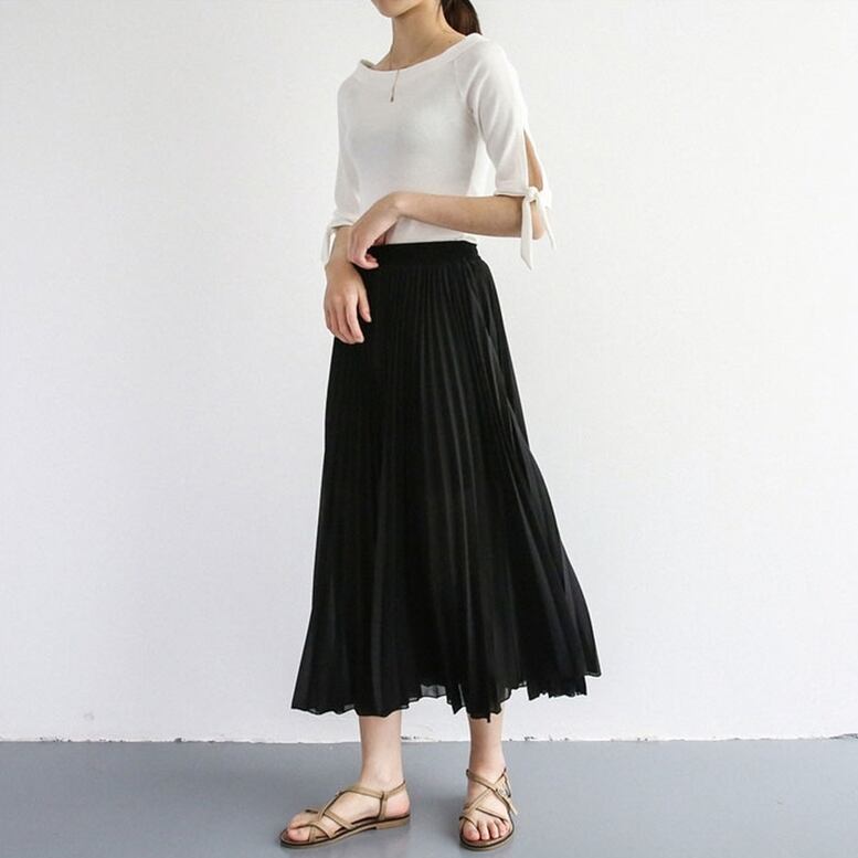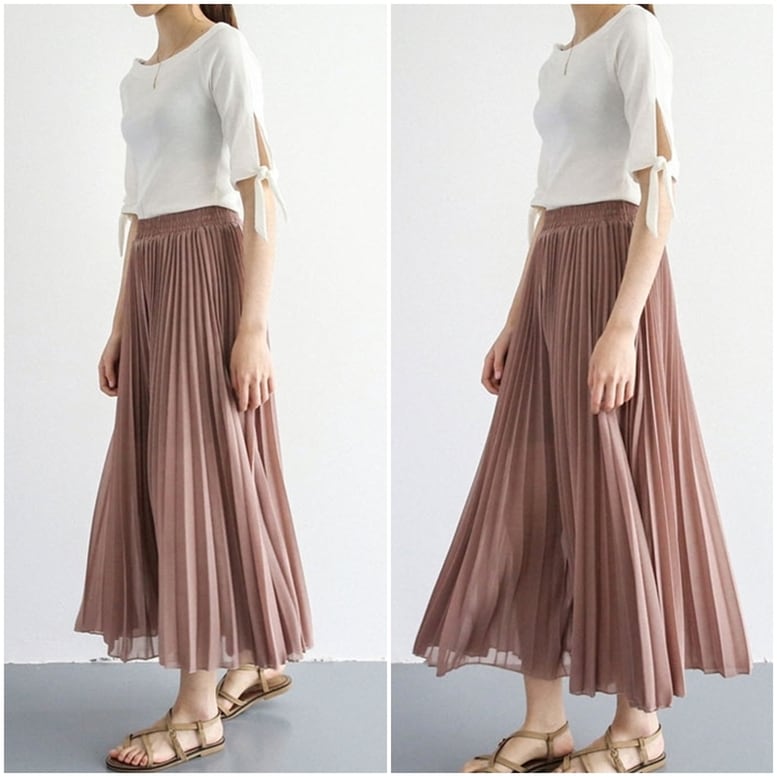 繊細なアコーディオンプリーツが大人の女性らしいエレガントな佇まいを後押ししてくれます