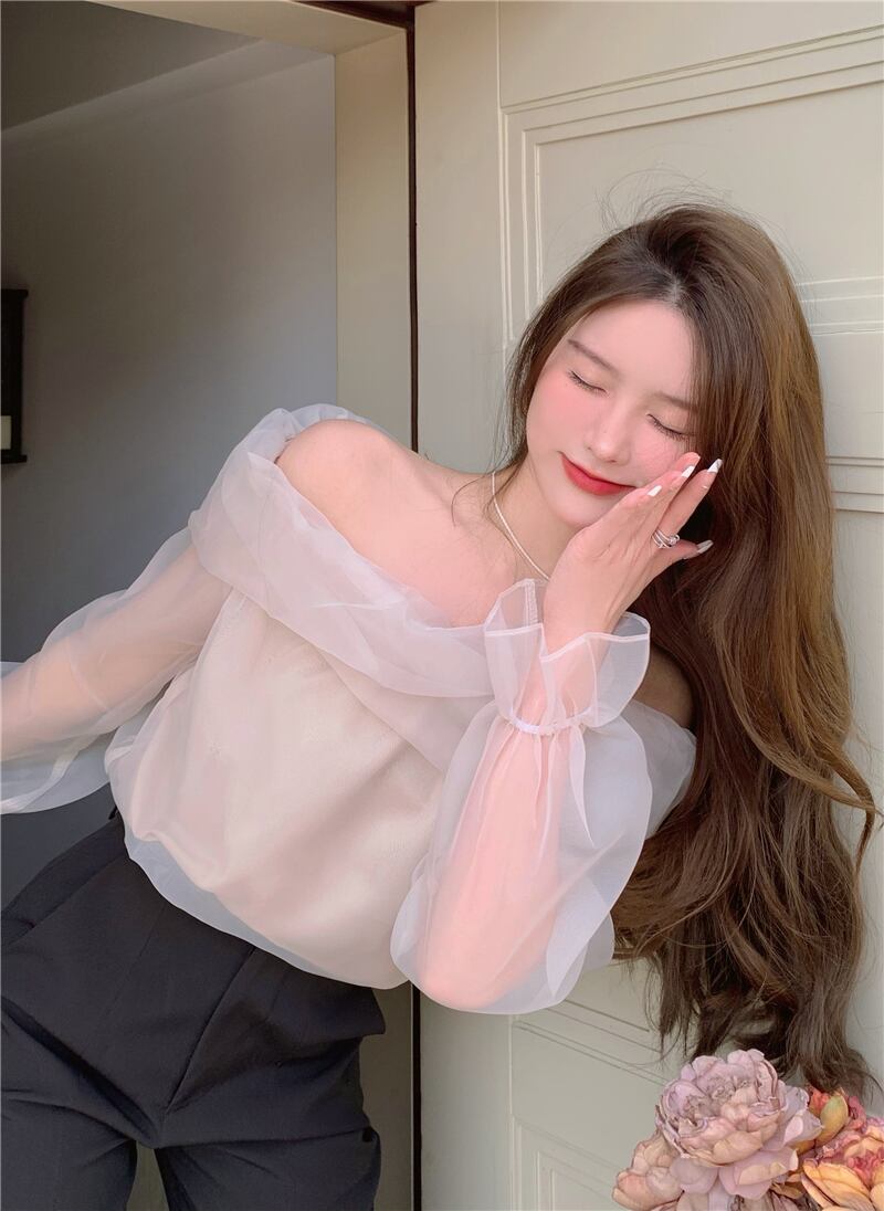 トップス レディース 送料無料 オフショルダーブラウス シースルーブラウス 長袖 おしゃれ スタイル 小顔見せ 着痩せ 体形カバー インスタ トレンド 透け感 かわいい エレガント キュート ガーリー シフォン ルーズ シャーリング ギャザー 女子会 お出かけ デート リゾート ガーリッシュ フェミニン ロマンチック バルーンスリーブ パフ袖 ボリューム ふんわり ゆったり オーガンジー シフォン シースルー ギャザー オフショル セクシー キャンディースリーブ フレア袖 デコルテ フェアリー