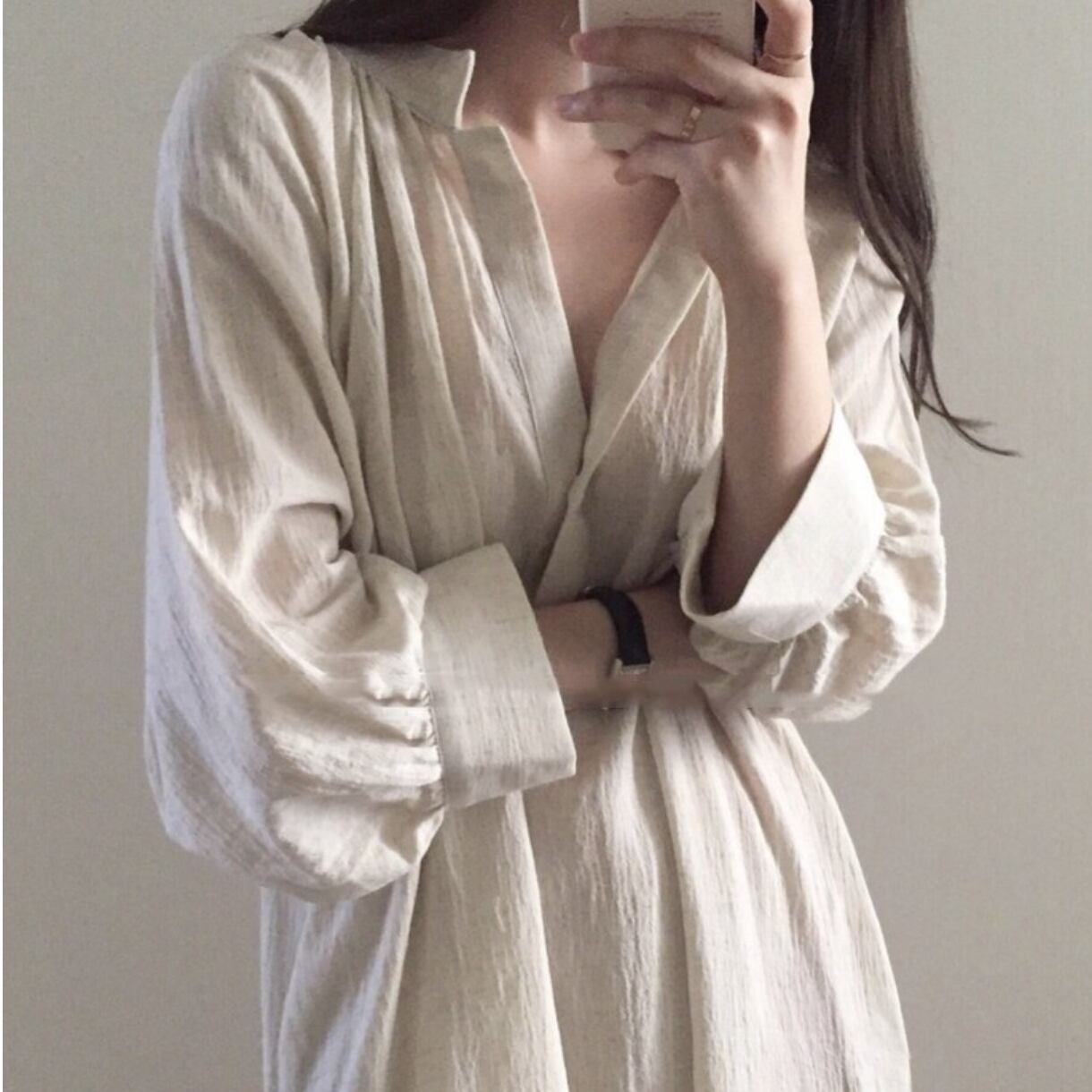 ワンピース レディース 送料無料 シャツワンピース スリット ランタンスリーブ バブルスリーブ パフスリーブ 七分袖 立ち襟 スタンドカラー ミモレ丈 ロング丈 プルオーバー スリット サイドポケット ポケット付き Vネック 無地 カジュアル シンプル きれいめ ラフ ストレート Iライン お洒落 おしゃれ エスニック アジアン ルーズ アイボリー ゆったり 大きめ 大きいサイズ ビッグサイズ ゆる S M L XL 2XL 3XL 春 夏 秋 春服 夏服 秋服 楽ちん 大人可愛い 涼しい 20代 30代