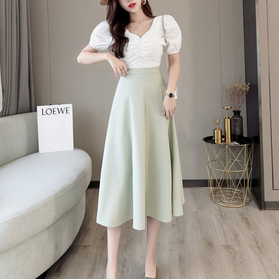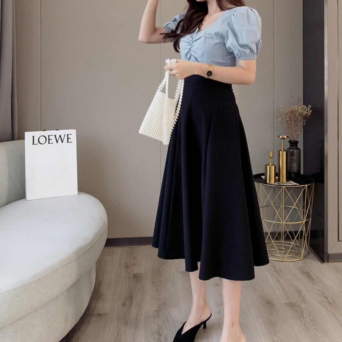フェミニンなフレアスカート。