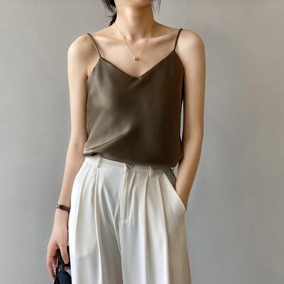 トップス レディース 送料無料 8色 キャミソール シルクサテン Vネック シンプル ベーシック インナー 無地 シルク風 きれいめ おしゃれ スタイル 小顔見せ 着痩せ 体形カバー インスタ トレンド デコルテ かわいい スーツ 女子会 デート エレガント 着回し カラーバリエーション ブラック ホワイト ベージュ マスタード カーキグリーン ブルーグレー レッドブラウン ブラウンくすみカラー ダスティカラー モノトーン ヘビロテ コーデ 色違い オフィス 通勤 OL コンサバ デコルテ キャミ