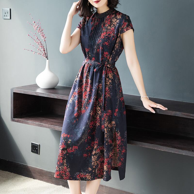 ワンピース レディース 送料無料 2色 ミディアムワンピース シャツワンピース ハイネック ピンタック プリーツ ウエストリボン 小花柄 フレア 二の腕カバー ゆったり ビッグサイズ 大きいサイズ ゆる マタニティ 楽ちん スリット サイドスリット カジュアル ラフ 体系カバー 着痩せ 無地 レトロ 婦人服 10代 20代 30代 40代 50代 ボックスシルエット Iライン 大人 重ね着 着回し 春服 春 夏服 夏 シンプル お洒落 おしゃれ アジアン エスニック ファッション コーデ スタイル 休日