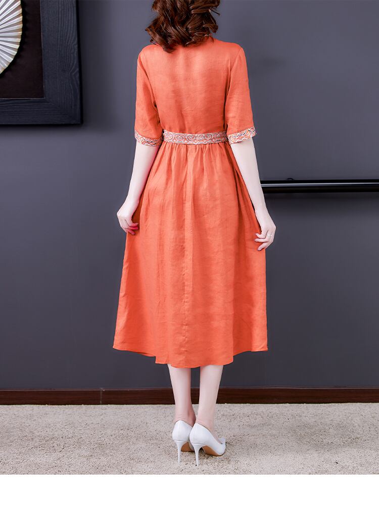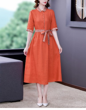 鮮やかなオレンジが映えるワンピースです。