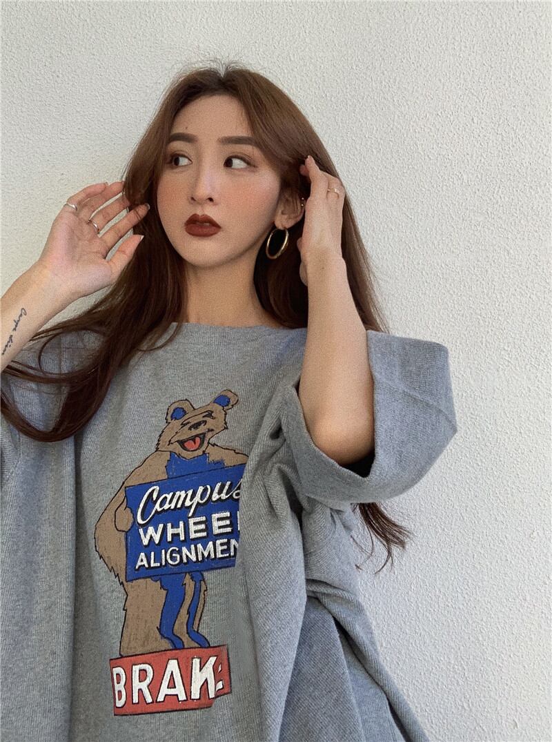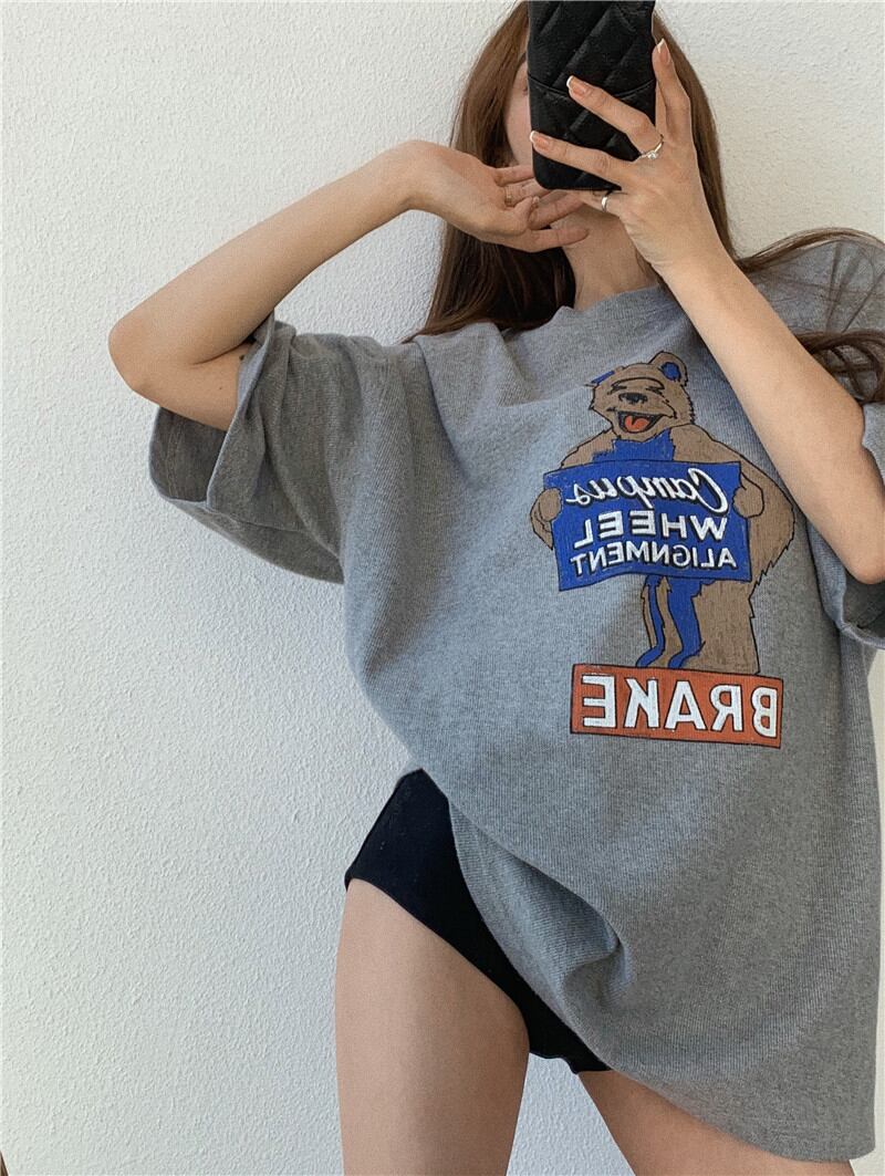 アメコミ風のくまちゃんがいい味のオーバーサイズTシャツ。
