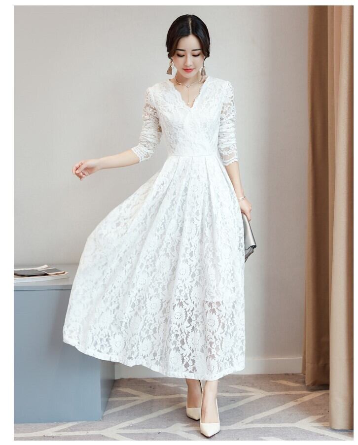 ワンピース ドレス ワンピドレス レディース 送料無料 フレアワンピース ミモレ丈 ロング丈 マキシ丈 袖あり 長袖 Vネック フレア スリム 細身 レース ウエストマーク ハイウエスト かわいい 大人可愛い きれいめ シンプル 上品 おしゃれ アジアン 大人女子 こなれ感 ラブリー キュート ガーリー セクシー エレガント モダン 主役級 存在感 フォーマル M L XL 2XL 白 ホワイト 黒 ブラック 青 ブルー ピンク 花柄 フラワー 春 夏 秋 10代 20代 パーティー イベント 韓国