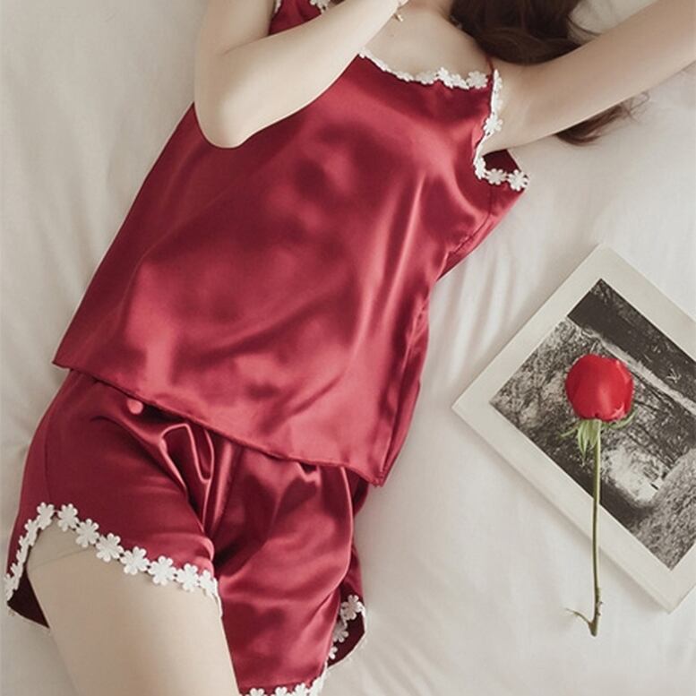 サテンルームウェアセット ナイトウェア レディース 送料無料 ルームウェア トップス パンツ セットアップ 上下セット 2点セット ツーピース オールインワン 部屋着 キャミソール+ショートパンツ上下2点セット フラワーデザインキャミ上下セット キャミソール ミニ ショート丈 袖なし ノースリーブ レース 刺繍 ウエストゴム サテン 大人可愛い きれいめ レトロ 大人女子 こなれ感 キュート ガーリー エレガント とろみ 大人カラー 花柄 小花柄 フラワー 高見え 格上げ インスタ映え 春夏 おしゃれ
