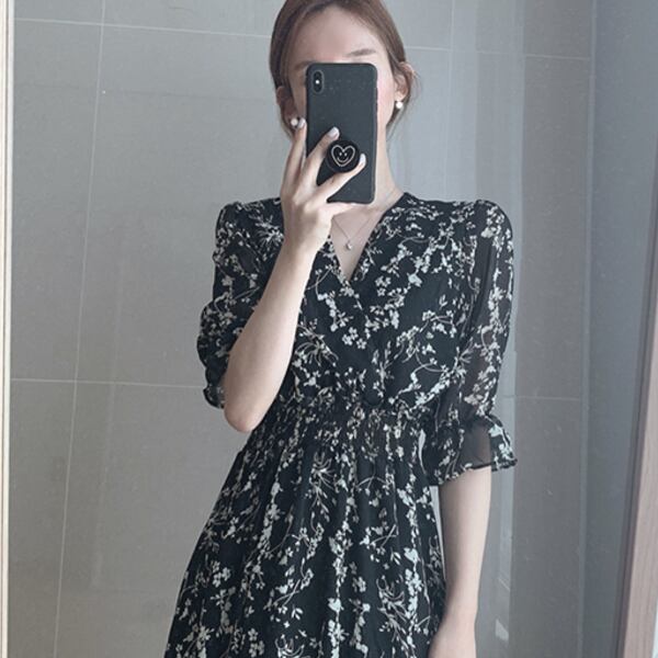 ハイセンスな花柄のワンピース。
