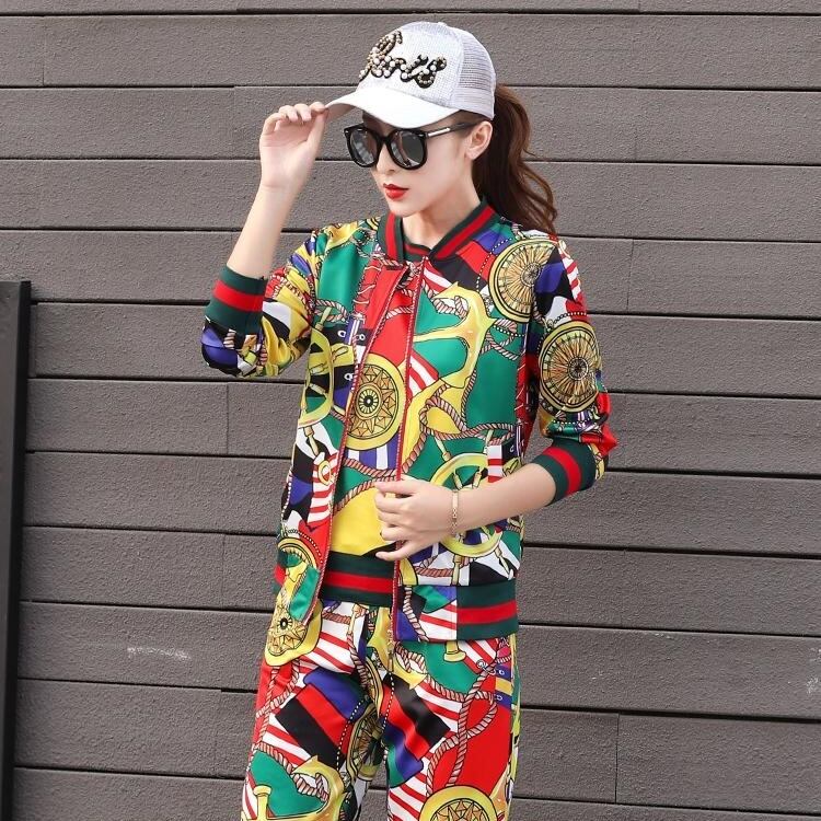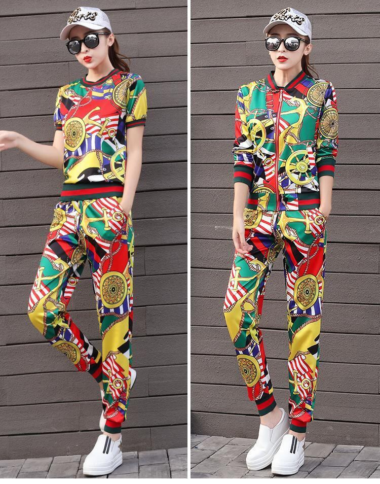 ビビットな配色と鮮明なモチーフが個性的なセットアップです。