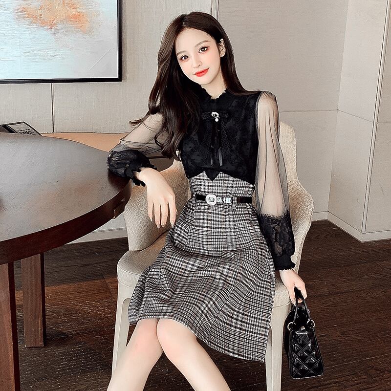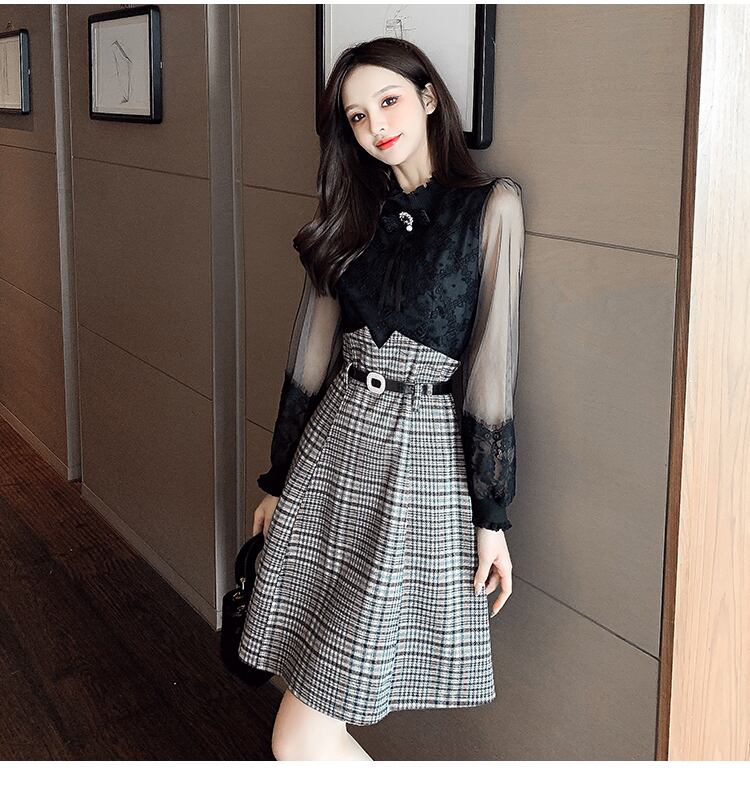 透け感のあるブラウスとチェックスカートがドッキングしたワンピースです。