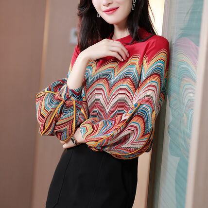 トップス レディース 送料無料 シャツ ブラウス 長袖 襟付き スタンドカラー 幾何学模様 ウェーブ レインボー パフスリーブ ゆったり ゆる 抜け感 こなれ感 シック クール カッコイイ かっこいい 個性的 華やか 派手 無地 春 春服 春物 秋 秋服 秋物 10代 20代 普段使い 重ね着 着回し おしゃれ お洒落 ラフ カジュアル 前開き シルバー 銀 ブラック 黒 グレー 灰色 涼し 通気性 薄手 ポリエステル シフォン シフォンシャツ ワイド 存在感 モード系 エキゾチック デート