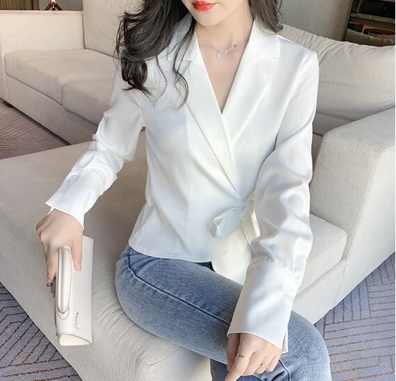トップス レディース 送料無料 シャツ ブラウス 長袖 襟付き ギャザー パフスリーブ ラップ リボン ベルト クロップド ショート丈 ゆったり ゆる 抜け感 こなれ感 シック クール カッコイイ かっこいい 個性的 華やか 派手 無地 春 春服 春物 秋 秋服 秋物 10代 20代 普段使い 重ね着 着回し おしゃれ お洒落 ラフ カジュアル 前開き シルバー 銀 ブラック 黒 グレー 灰色 涼し 通気性 薄手 ポリエステル シフォン シフォンシャツ ワイド 存在感 モード系 エキゾチック デート
