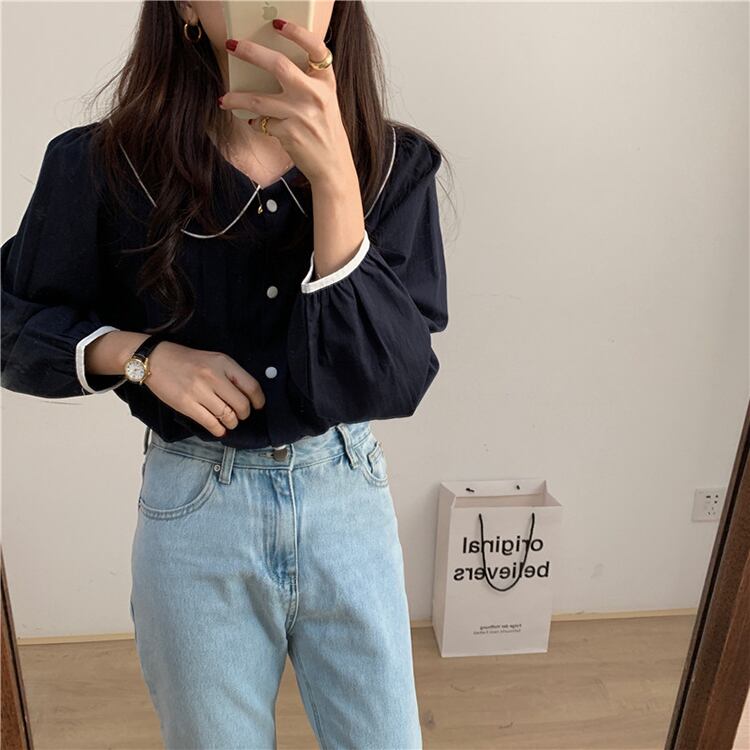 トップス レディース 送料無料 2色 シャツ ブラウス 長袖 襟付き ビッグカラ— ピンタック パフスリーブ ゆったり パイピング フリーサイズ ゆる 抜け感 こなれ感 シック クール カッコイイ かっこいい 個性的 華やか 派手 無地 春 春服 春物 秋 秋服 秋物 10代 20代 普段使い 重ね着 着回し おしゃれ お洒落 ラフ カジュアル 前開き シルバー 銀 ブラック 黒 グレー 灰色 涼し 通気性 薄手 ポリエステル シフォン シフォンシャツ ワイド 存在感 モード系 エキゾチック デート