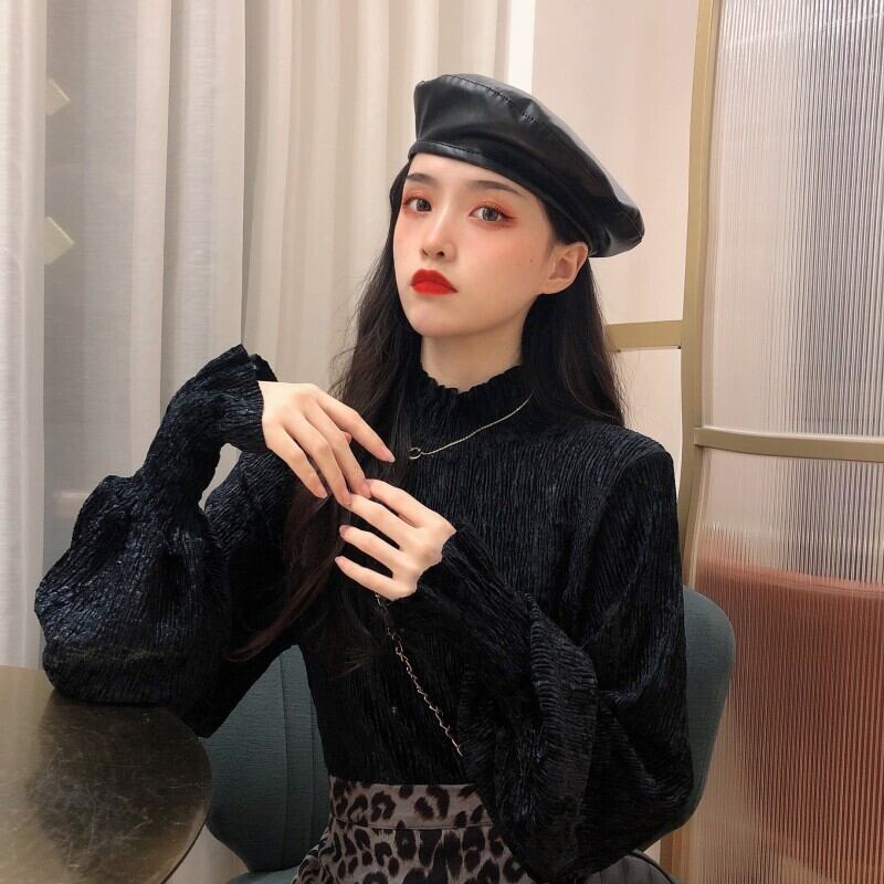 トップス レディース 送料無料 2色 カットソー ハイネック シャーリング ベルベット 長袖 スタンドカラー ギャザー パフスリーブ ゆったり ゆる 透け感 抜け感 こなれ感 シック クール カッコイイ かっこいい 個性的 華やか 派手 無地 春 春服 春物 秋 秋服 秋物 10代 20代 普段使い 重ね着 着回し おしゃれ お洒落 ラフ カジュアル 前開き シルバー 銀 ブラック 黒 グレー 灰色 涼し 通気性 薄手 ポリエステル シフォン シフォンシャツ ワイド 存在感 モード系 エキゾチック デート