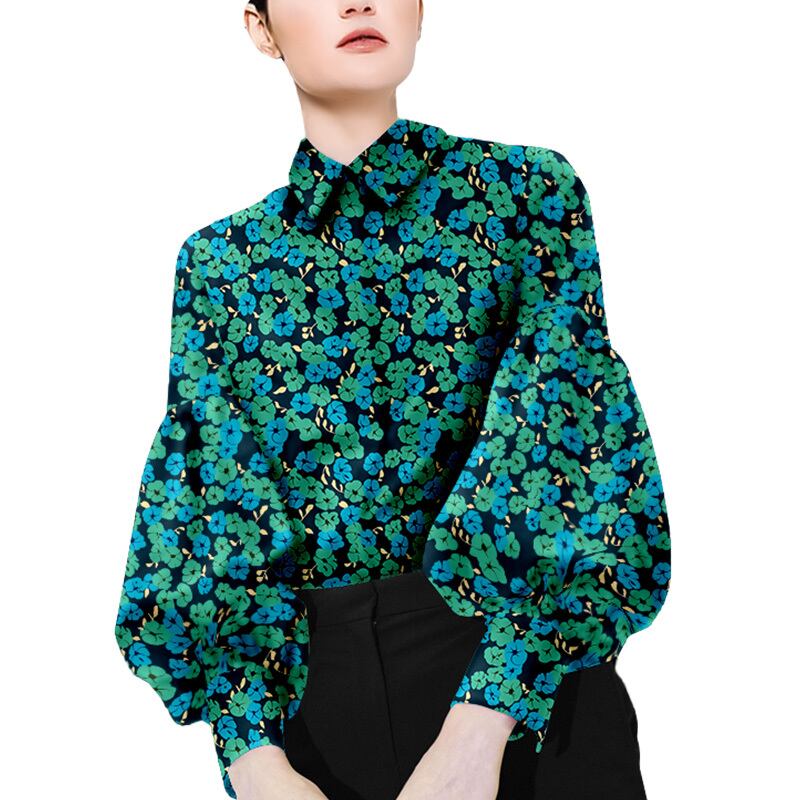 トップス ブラウス シャツ レディース 送料無料 袖あり 長袖 ボリューム袖 パフスリーブ 襟付き 前開き かわいい 大人可愛い きれいめ カジュアル 上品 おしゃれ お洒落 かっこいい レトロ アジアン エスニック エキゾチック 大人女子 こなれ感 ラフ ラブリー キュート ガーリー ルーズ 個性的 クール モード系 セクシー エレガント モダン 主役級 存在感 S M L XL 2XL ビッグサイズ ゆったり 緑 グリーン 大人カラー 花柄 小花柄 フラワー 春 夏 秋 冬 10代 20代 韓国系