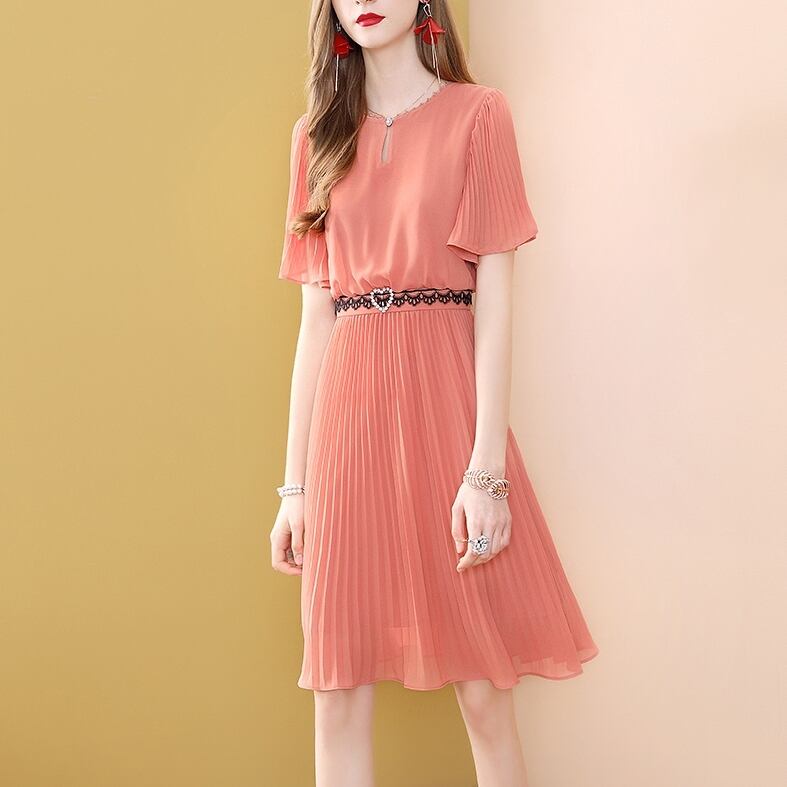 ワンピース レディース 送料無料 プリーツ プリーツスカート 丸首 ラウンドネック プルオーバー ウエストマーク ハイウエスト 脚長 美脚 スタイルアップ かわいい 大人可愛い Aライン きれいめ シンプル おしゃれ お洒落 大人 上品 エレガント 大人女子 こなれ感 抜け感 透け感 キュート ラブリー ガーリー フェミニン ゆったり ゆる S M L XL 2XL 無地 二の腕カバー ピンク 春 春服 夏 夏服 20代 30代 普段使い 重ね着 楽ちん モテ 定番 デート お出かけ 女子会 パーティー