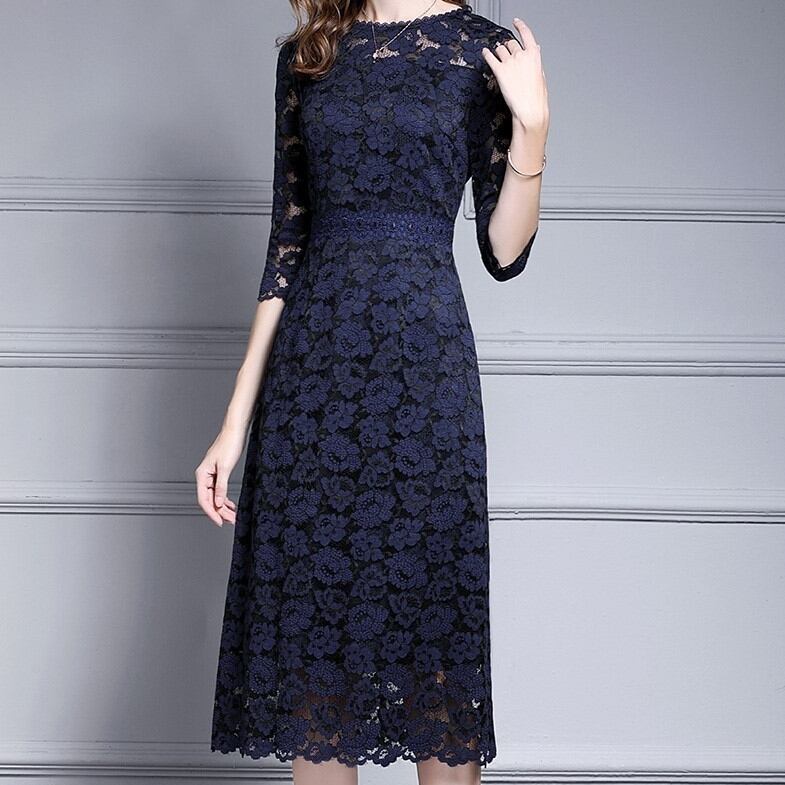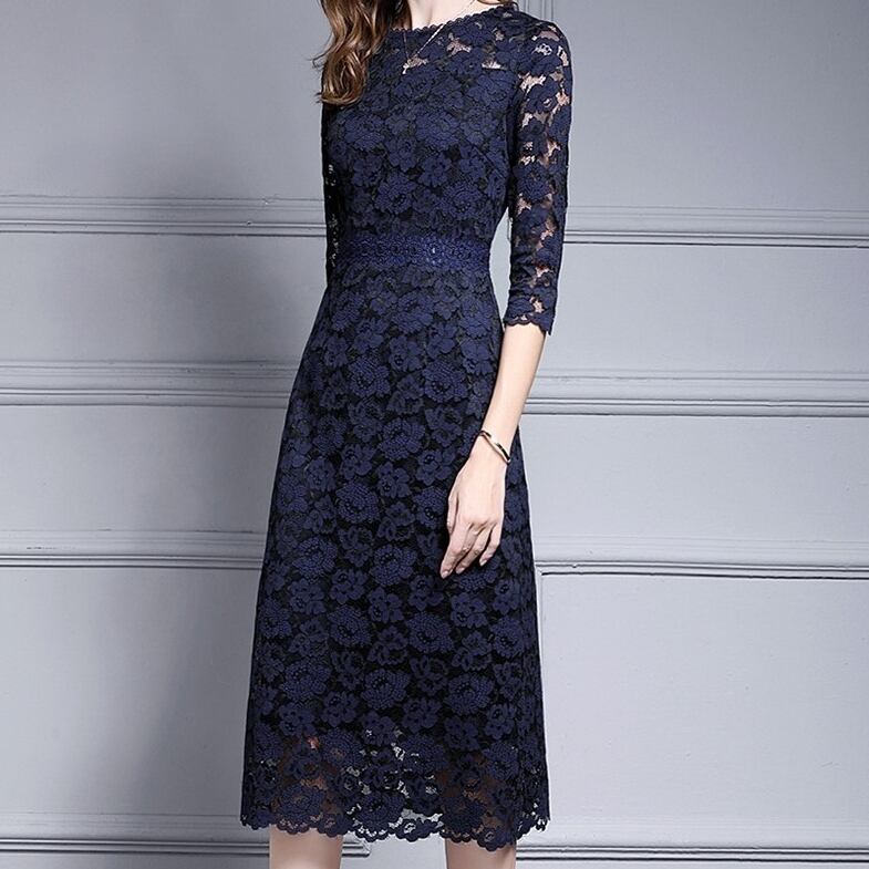 ワンピース レディース 送料無料 ドレス パーティードレス フォーマル フォーマルドレス お呼ばれドレス 丸首 ラウンドネック ゲストドレス きれいめ エレガント 上品 長袖 Aライン おしゃれ お洒落 大人 タイト 細身 大きめ 大きいサイズ ビッグサイズ サイズ豊富 M L XL XXL XXXL 総レース ネイビー 紺 結婚式 二次会 披露宴 食事会 謝恩会 お呼ばれ お宮参り 同窓会 発表会 演奏会 体型カバー 二の腕カバー 細見え クラシック イベント パーティー衣装 服装 単色 花柄 フラワー