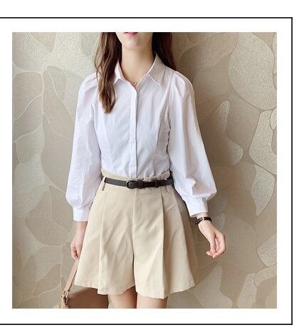 パワーショルダーで腕にボリュームをあしらったシャツです。
