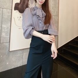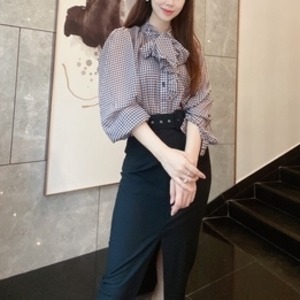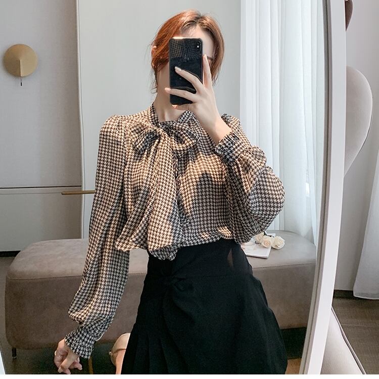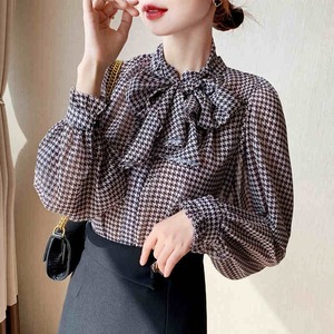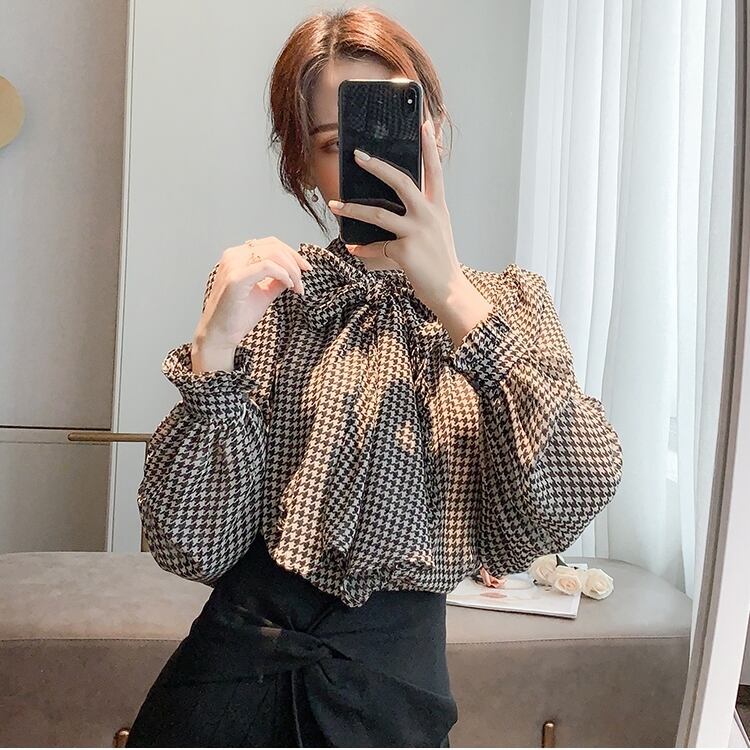 トップス レディース 送料無料 シャツ ブラウス 長袖 襟付き スタンドカラー リボンタイ ボウタイ 千鳥格子 パフスリーブ ゆったり ゆる 透け感 抜け感 こなれ感 シック クール カッコイイ かっこいい 個性的 華やか 派手 無地 春 春服 春物 秋 秋服 秋物 10代 20代 普段使い 重ね着 着回し おしゃれ お洒落 ラフ カジュアル 前開き シルバー 銀 ブラック 黒 グレー 灰色 涼し 通気性 薄手 ポリエステル シフォン シフォンシャツ ワイド 存在感 モード系 エキゾチック デート