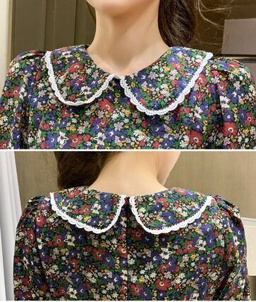 ワンピース レディース 送料無料 フレアワンピース ミディ丈 ミディアム ティアード 丸襟 襟付き パフスリーブ エンジェルスリーブ 小花柄 半袖 Aライン フィットアンドフレア 透け感 シースルー 抜け感 こなれ感 爽やか 涼し かわいい 大人可愛い フリル リボン ウエストマーク 膝丈 プルオーバー 大人女子 きれいめ ひらひら 通気性 フェミニン ガーリー キュート ラブリー ブルー 青 無地 単色 春 春服 夏 夏服 20代 30代 普段使い 存在感 お出かけ スタイル ハイウエスト 脚長 美脚