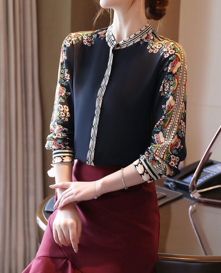 トップス シャツ ブラウス レディース 送料無料 袖あり 長袖 ハイネック 刺繍 かわいい 大人可愛い きれいめ シンプル 上品 おしゃれ お洒落 レトロ アジアン エスニック エキゾチック 大人女子 こなれ感 ラブリー キュート ガーリー 個性的 エレガント モダン 主役級 存在感 フォーマル S M L XL 2XL 大きいサイズ ゆったり 黒 ブラック 大人カラー 花柄 小花柄 フラワー ボタニカル 春 秋 冬 20代 30代 オフィス ビジネス OL 通勤 お出かけ 普段使い 韓国 インスタ映え