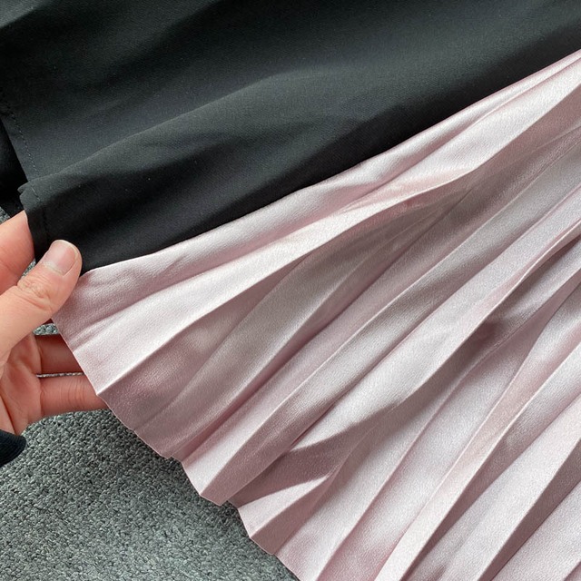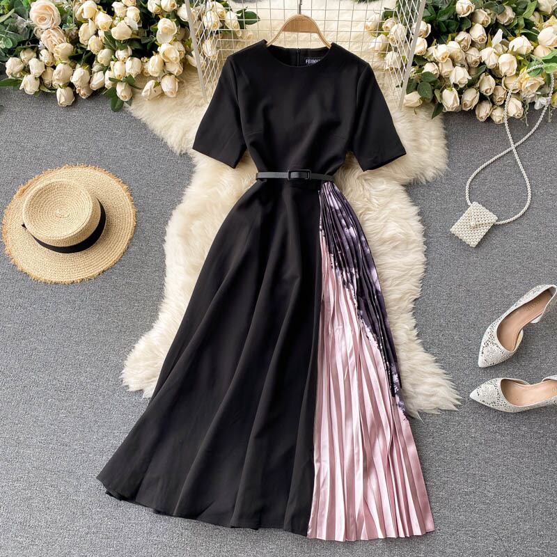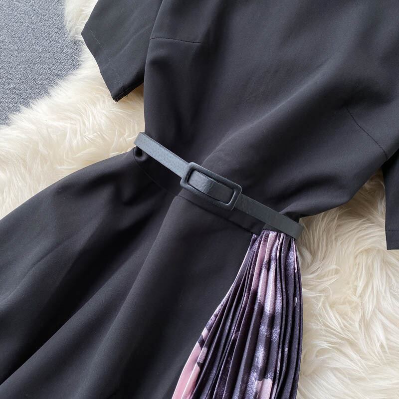 ワンピース レディース 送料無料 フレアワンピース ミモレ丈 ロング丈 マキシ丈 アンクル丈 袖あり 長袖 Uネック ラウンドネック Aライン アシンメトリー 切り替えデザイン プリーツ ベルト ウエストマーク ハイウエスト かわいい 大人可愛い きれいめ 上品 おしゃれ アジアン 大人女子 こなれ感 ラブリー キュート ガーリー 個性的 エレガント モダン 存在感 S M L XL 2XL 3XL 黒 ブラック ピンク 春 秋 冬 10代 20代 オフィス OL パーティー イベント 普段使い 韓国系