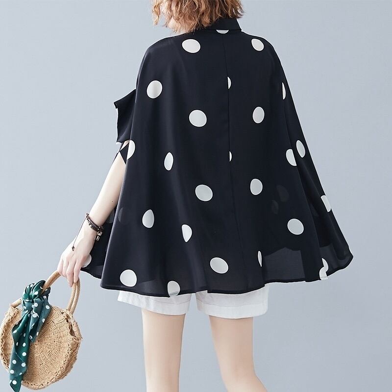 トップス レディース 送料無料 シャツ ブラウス 襟付き 半袖 ドルマンスリーブ オーバーサイズ オーバーシルエット ビッグシルエット ワイド 大きめ 大きいサイズ フリーサイズ 楽ちん ゆったり ゆる 体型カバー 華奢 細見え ブラック 黒 ホワイト 白 ドット柄 水玉 かわいい 可愛い シンプル カジュアル きれいめ おしゃれ お洒落 こなれ感 透け感 抜け感 ラフ キュート ガーリー ルーズ 個性的 春 春服 夏 夏服 10代 20代 デート おでかけ 普段使い 重ね着 韓国 オルチャンファッション
