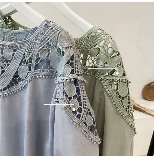 トップス レディース 送料無料 2色 シャツ ブラウス 長袖 レース クロシェ パフスリーブ ゆったり 透け感 抜け感 こなれ感 シック クール カッコイイ かっこいい 個性的 華やか 派手 無地 春 春服 春物 秋 秋服 秋物 10代 20代 普段使い 重ね着 着回し おしゃれ お洒落 ラフ カジュアル 前開き シルバー 銀 ブラック 黒 グレー 灰色 涼し 通気性 薄手 ポリエステル シフォン シフォンシャツ ワイド 存在感 モード系 エキゾチック デート