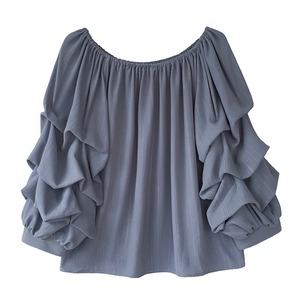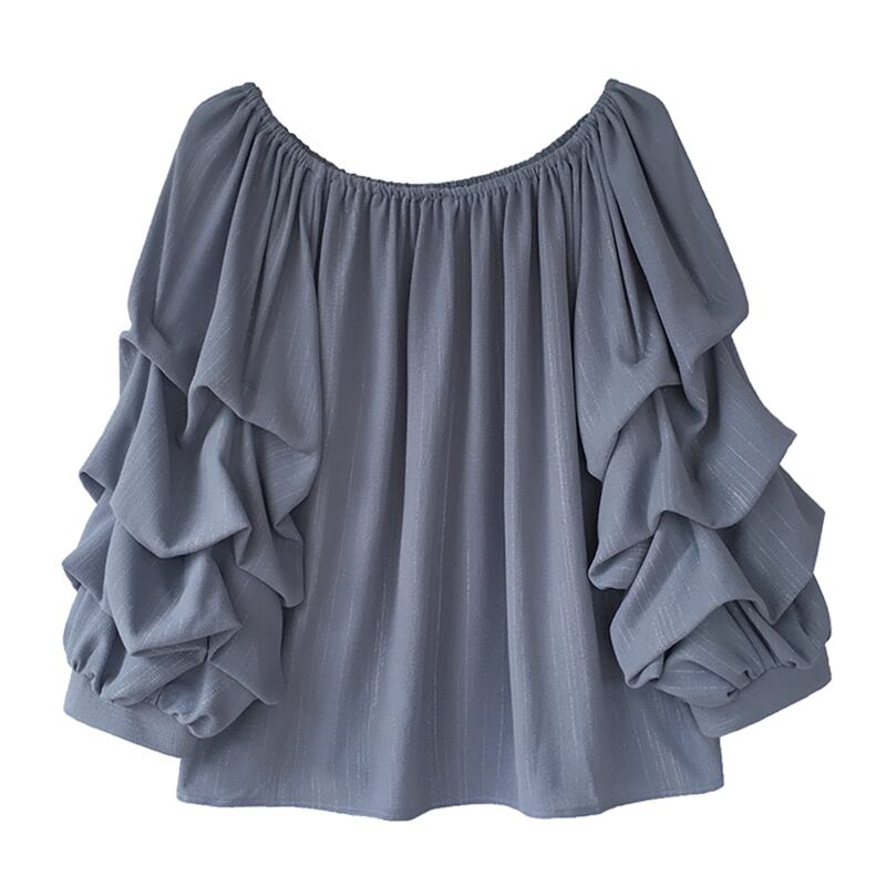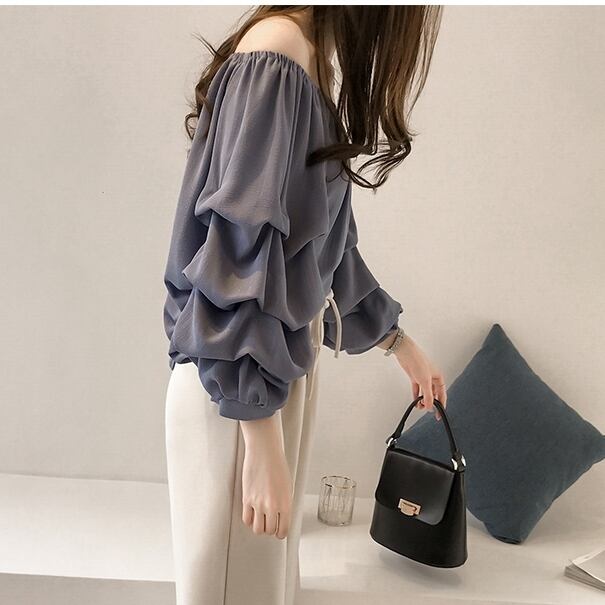 トップス レディース 送料無料 3色 シャツ ブラウス オフショルダー ボートネック 長袖 シフォン ボリュームスリーブ パフスリーブ ゆったり 透け感 抜け感 こなれ感 シック クール カッコイイ かっこいい 個性的 華やか 派手 無地 春 春服 春物 秋 秋服 秋物 10代 20代 普段使い 重ね着 着回し おしゃれ お洒落 ラフ カジュアル 前開き シルバー 銀 ブラック 黒 グレー 灰色 涼し 通気性 薄手 ポリエステル シフォン シフォンシャツ ワイド 存在感 モード系 エキゾチック デート