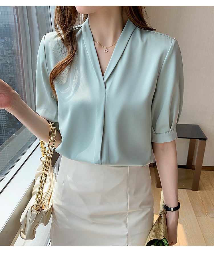 2色 シフォンブラウス vネック ベーシック 5分丈 送料無料 レディース オフィス オフィスカジュアル ホワイト ライトブルー 大人可愛い きれいめ 大人女子 エレガント 肌見せ デコルテ 無地 春 夏 ガーリー 10代 20代 大人 お出かけ 外出 きれいめカジュアル 着回し ファッション デート コーディネート 重ね着 休日 特別な日 お祝い 記念日 メンズウケ カジュアル 普段着 春コーデ 夏コーデ おしゃれ シンプル ゆったり ファッション 半袖 オフィスカジュアル 30代 オフィス ママコーデ
