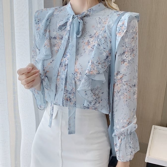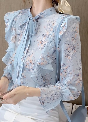 トップス レディース 送料無料 ボウタイリボンブラウス フリルスリーブブラウス 長袖ブラウス ティアードフリルブラウス シフォンブラウス フラワープリント ドレスブラウス おしゃれ スタイル 小顔見せ 着痩せ 体形カバー インスタ トレンド きれいめ かわいい エレガント フェミニン ティアード カスケードフリル ボタニカルフラワー キュート ガーリー ギャザー シャーリング ロマンチック S M L XL 2XL デート リゾート ブラウス フリル 上品 花柄 フレアスリーブ ボウタイ 長袖
