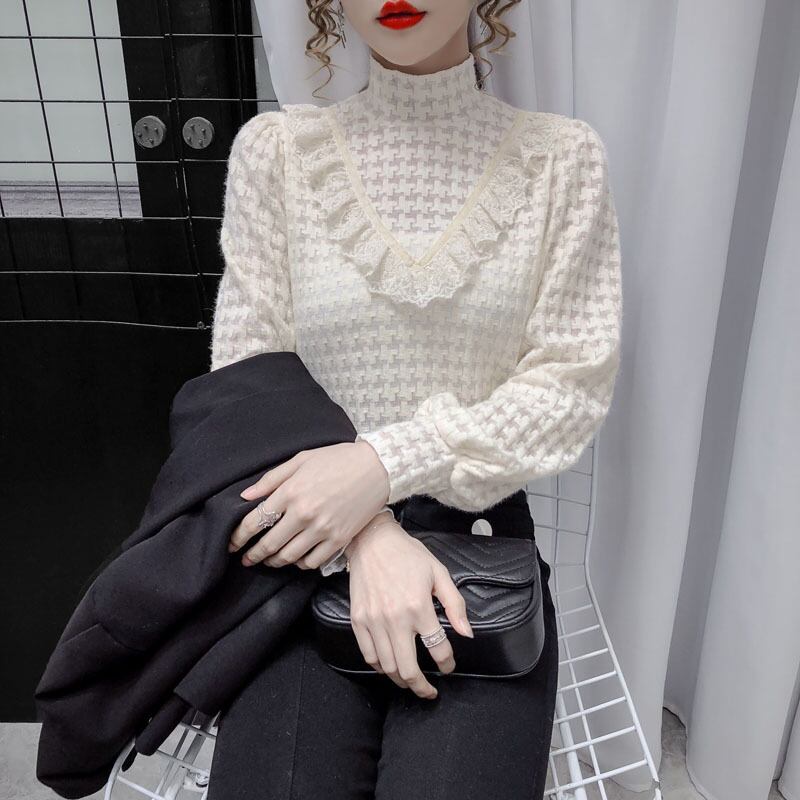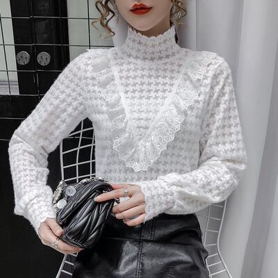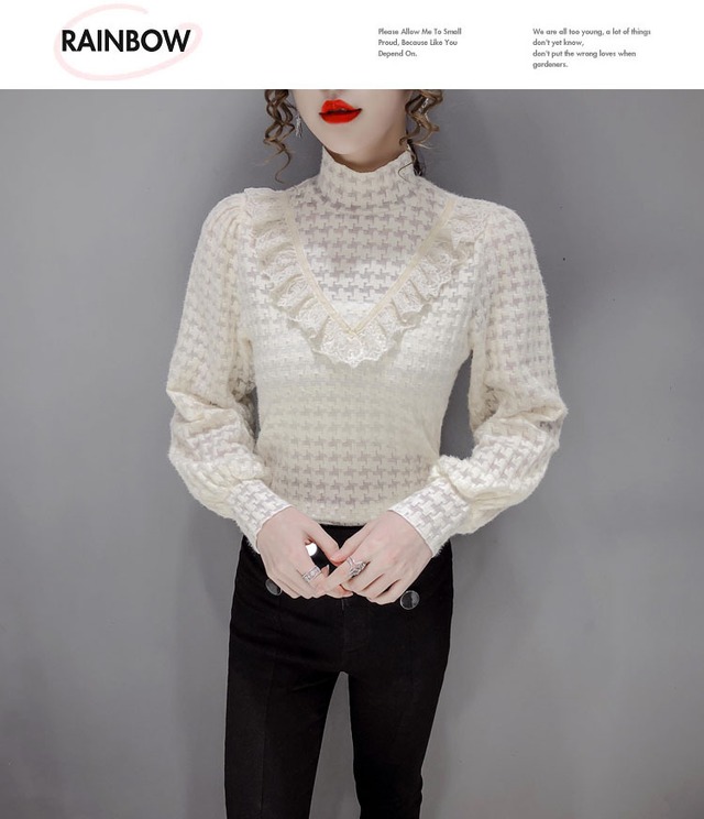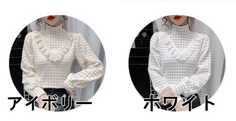 トップス レディース 送料無料 2色 千鳥格子柄ブラウス フリルブラウス ニットブラウス 長袖ブラウス ハイネックブラウス レースブラウス ドレスブラウス おしゃれ スタイル 小顔見せ 着痩せ 体形カバー インスタ トレンド きれいめ かわいい エレガント フェミニン キュート ガーリー ギャザー 千鳥格子柄 シャーリング ロマンチック レース S M L XL 2XL デート 透け感 ブラウス フリル 上品 パフスリーブ 長袖 ニットレース アイボリー ホワイト フロントフリル タートルネック