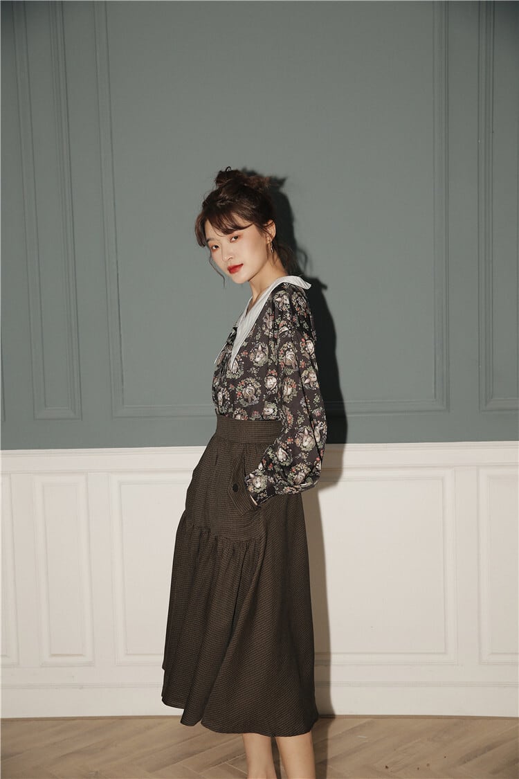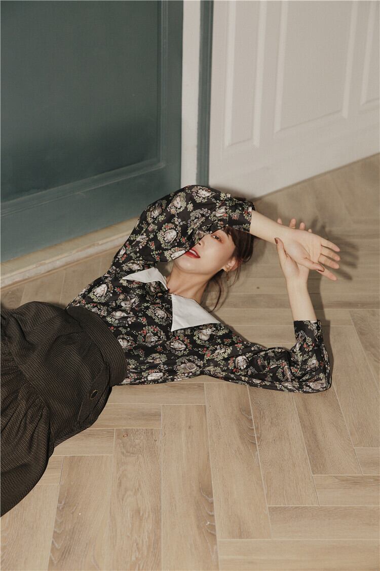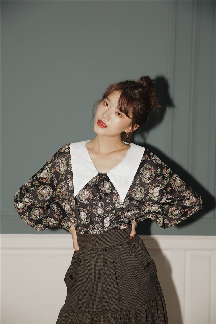 ウサギ模様のブラックの生地と大きな襟のブラウスです。